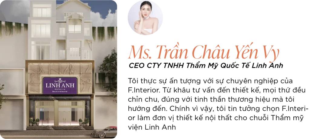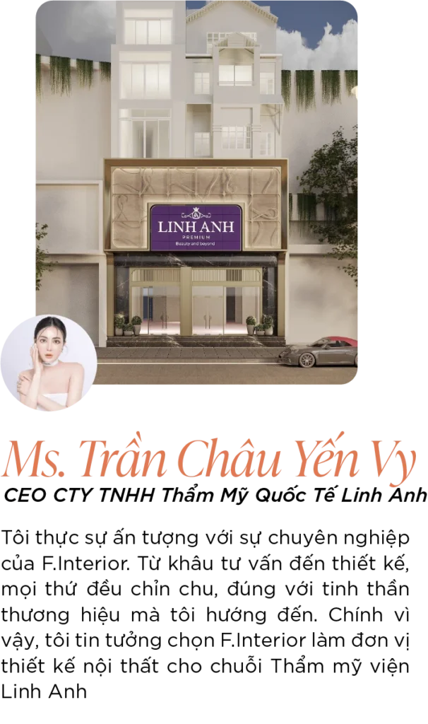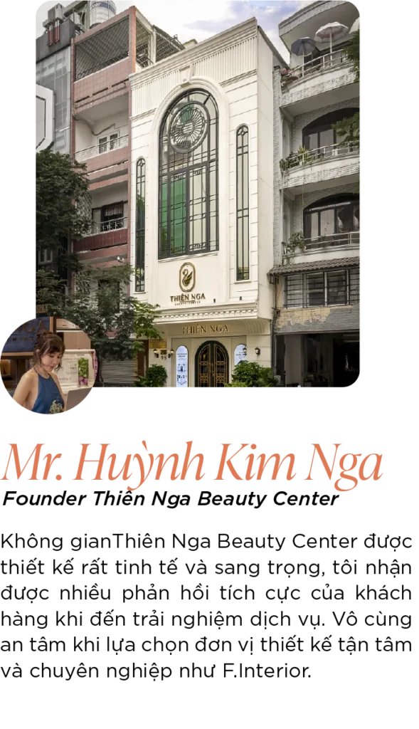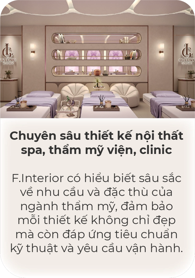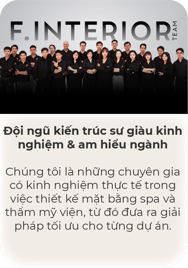 F.Interior có hiểu biết sâu sắc về nhu cầu và đặc thù của ngành thẩm mỹ, đảm bảo mỗi thiết kế không chỉ đẹp mà còn đáp ứng tiêu chuẩn kỹ thuật và yêu cầu vận hành