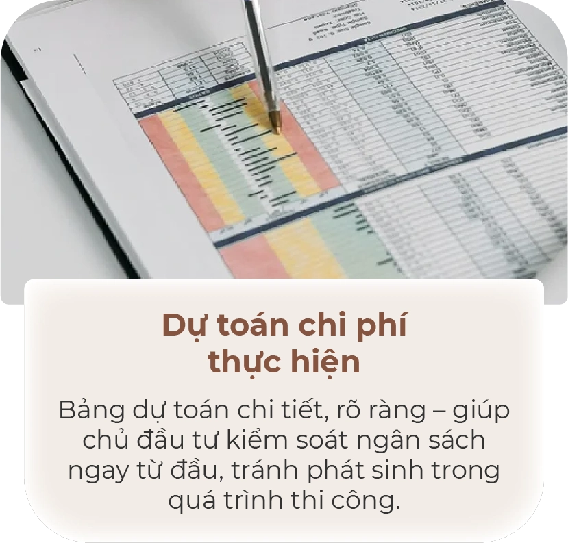 Bảng dự toán chi tiết, rõ ràng – giúp chủ đầu tư kiểm soát ngân sách ngay từ đầu, tránh phát sinh trong quá trình thi công.