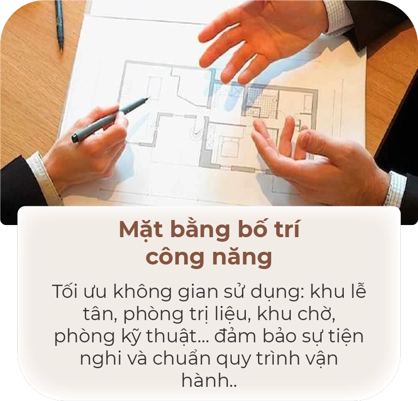 Tối ưu không gian sử dụng: khu lễ tân, phòng trị liệu, khu chờ, phòng kỹ thuật… đảm bảo sự tiện nghi và chuẩn quy trình vận hành..