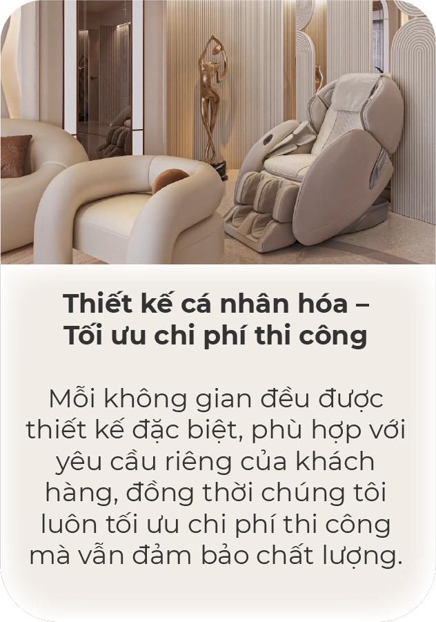 Mỗi không gian đều được thiết kế đặc biệt, phù hợp với yêu cầu riêng của khách hàng, đồng thời chúng tôi luôn tối ưu chi phí thi công mà vẫn đảm bảo chất lượng.